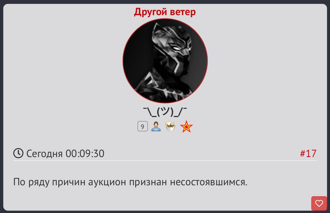 Возможно, дело в опечатке, или же аукцион действительно заёршился… потому что вскоре мы увидели следующее объявление: