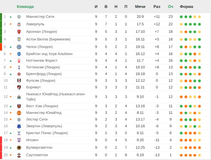 Новости футбола таблица чемпионата