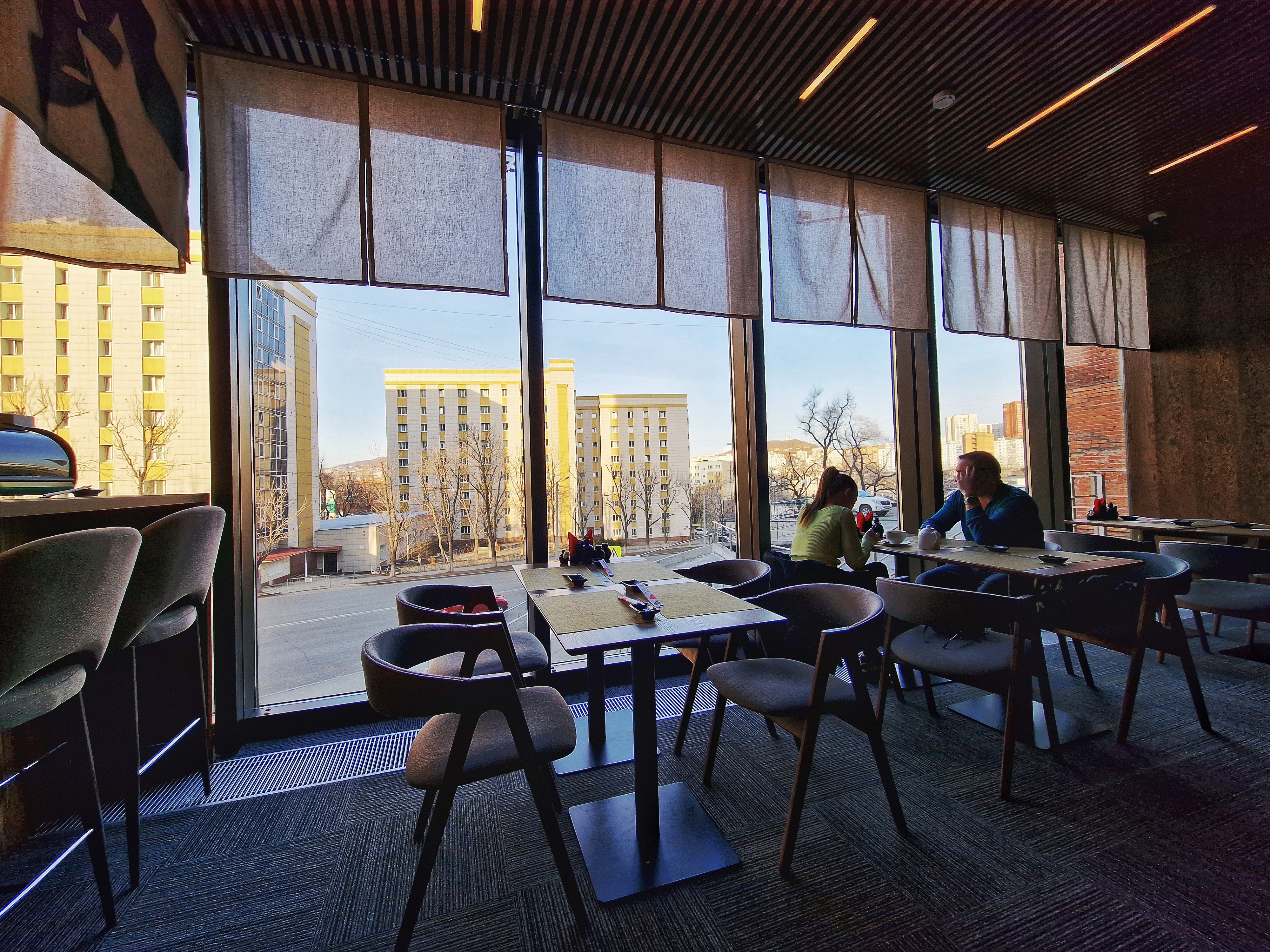 Интерьер, кстати, бедненький. Не то, чтобы японские идзакаи блистали интерьерными решениями, но херовый ремонт и огромные окна атмосферы явно не добавляют.