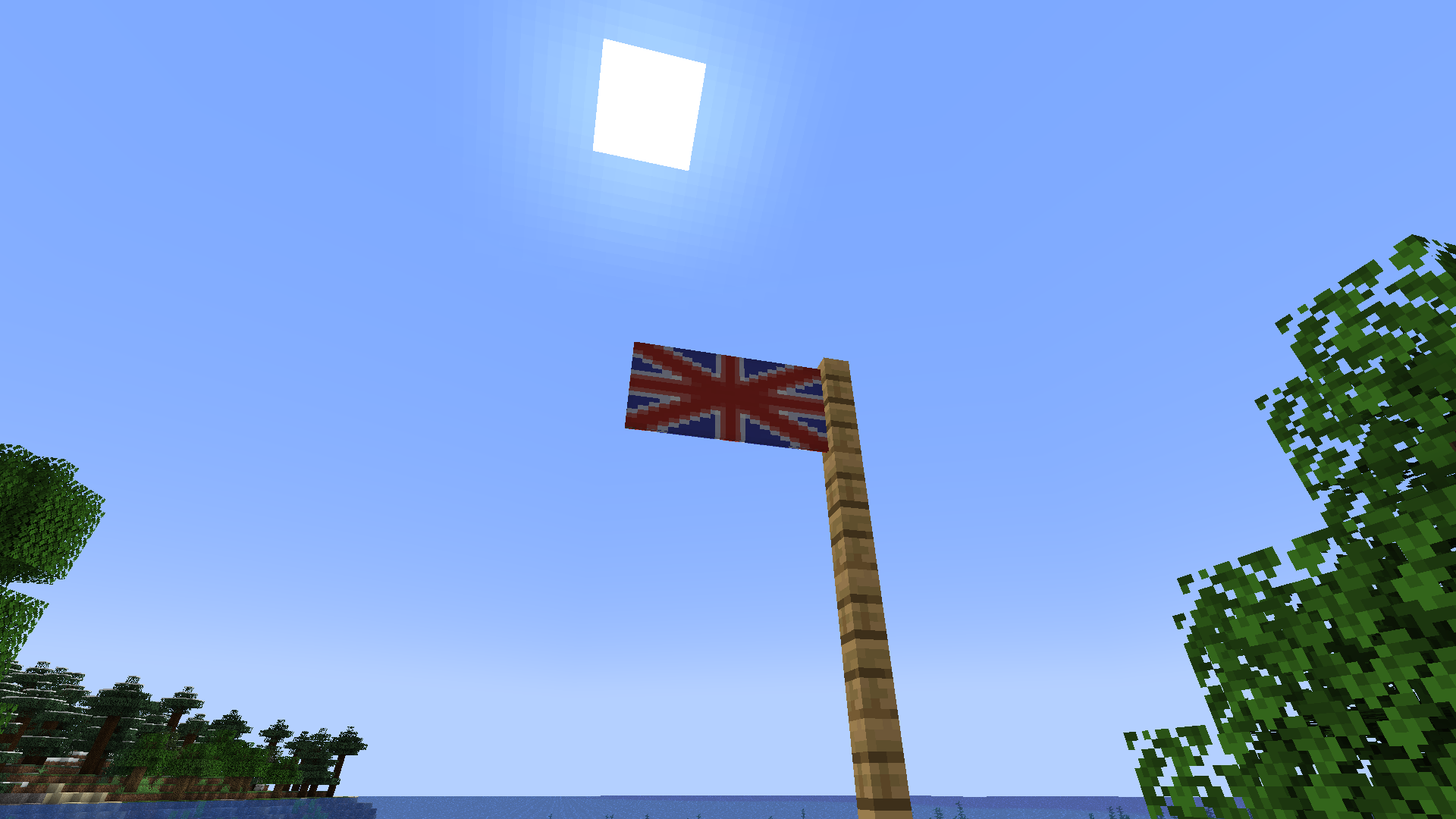 Если соорудить флагшток из забора/железных решеток/каменной ограды/стеклянных панелей и повесить на него баннер, зажимая клавишу SHIFT, то у вас получится повесить его в горизонтальном положении.