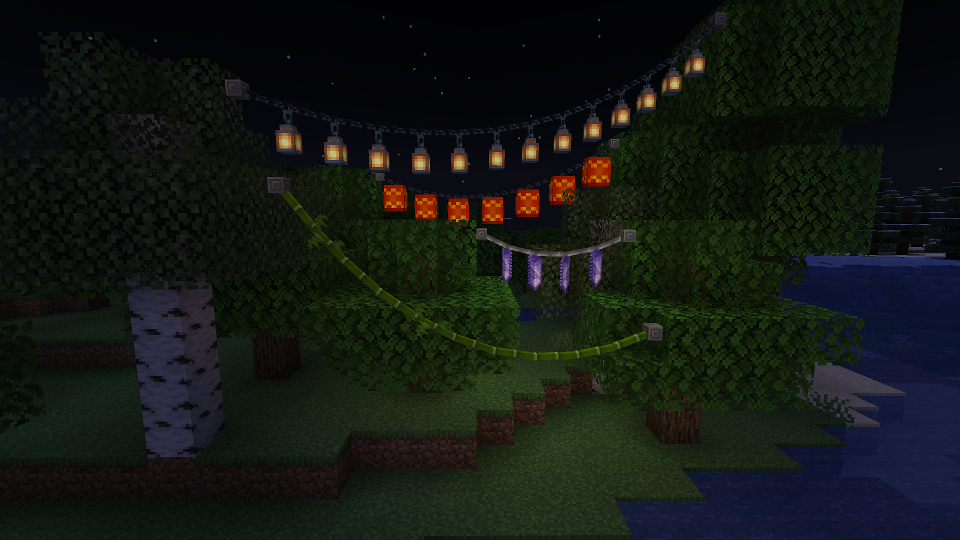 Рецепт: 3 бамбука в форме ведра. - Цепь с фонарями: аналогична простой цепочке, но с фонарями, излучающими уровень света 7.