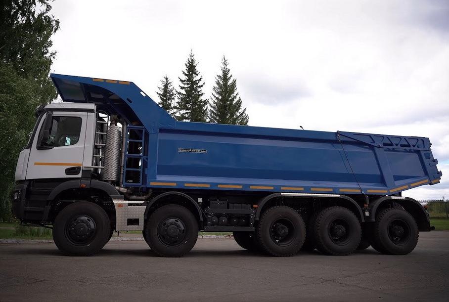 Новые машины должны начать производить в 2021- 2022 годах . Ранее по теме: Новый КАМАЗ с кабиной от Актроса будет стоить дороже, чем ожидалось . Самосвал КАМАЗ K5 с колесной формулой 8x4 .