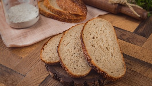 Ну, а это лучший компаньон к борщу. Очень вкусный хлеб на закваске с зернышками тмина. Их немного и вкус достаточно деликатный, без пряности буханки бородинского.
