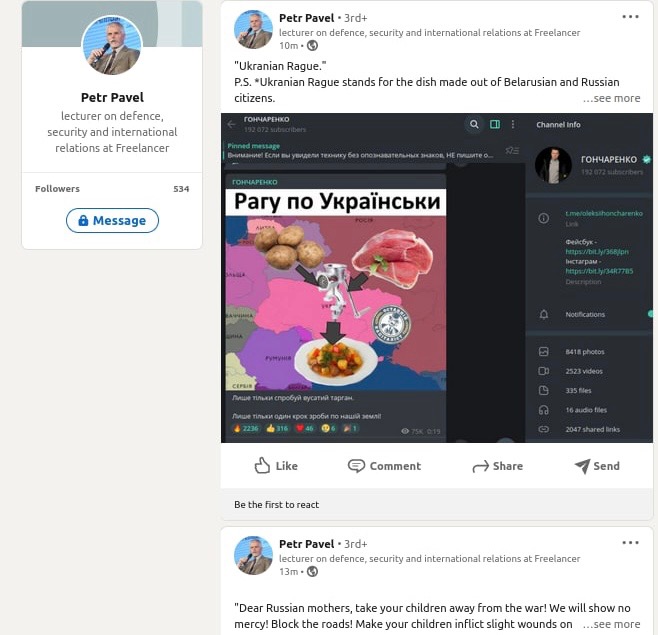 @sindbad_snegohodСкриншоты из LinkedIn со страницы Петр Павел с осуждением нациских зверств, которые в последствии были удалены под нажимом «либеральной общественности».