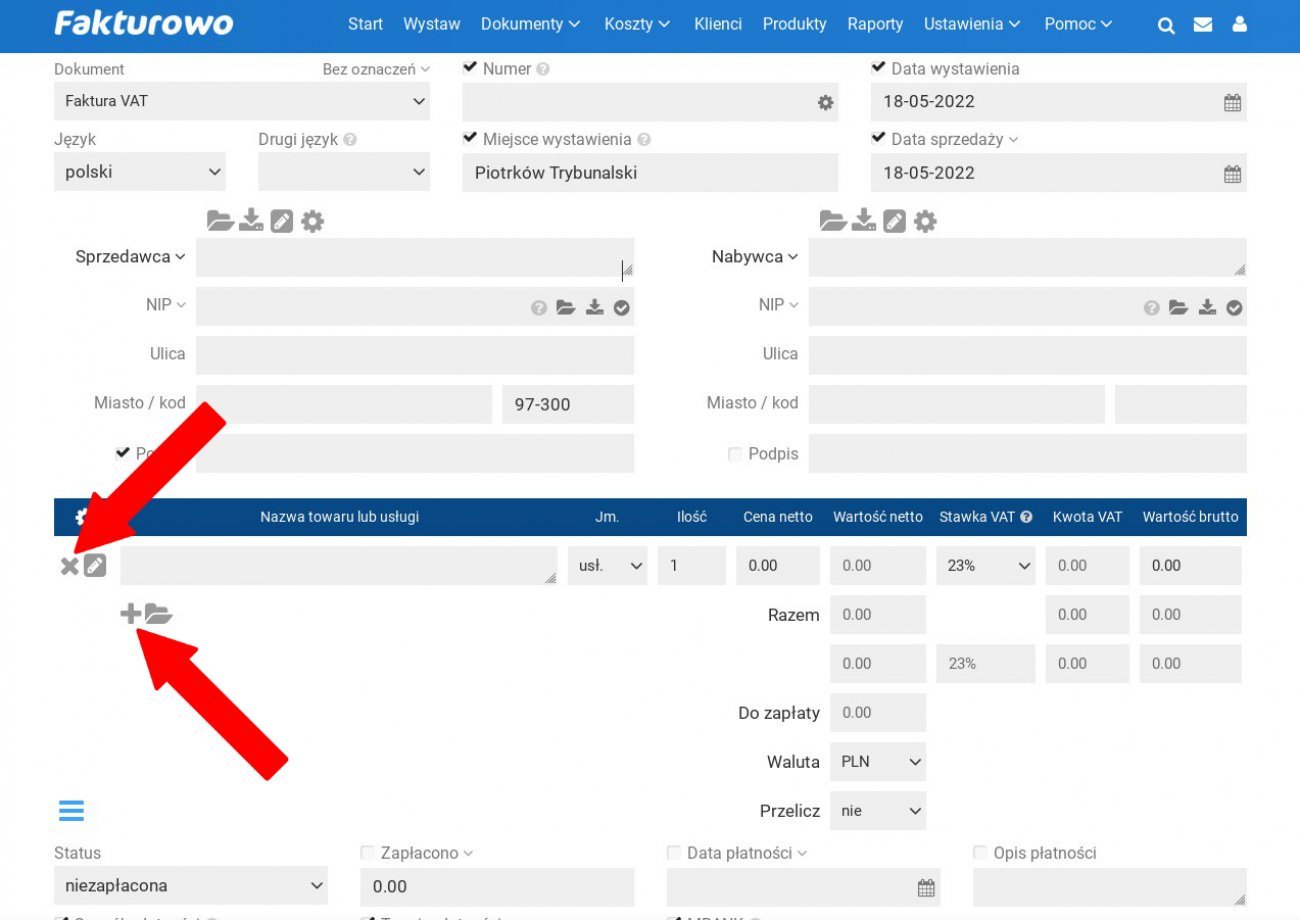 Pomoc - Pozycje menu: Nowa