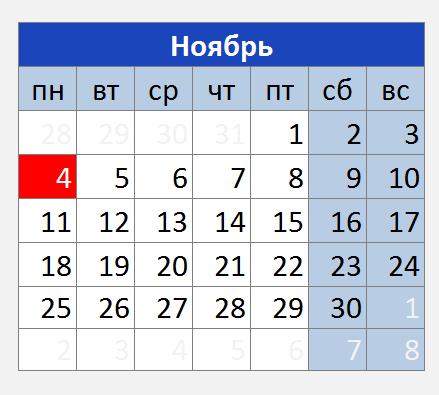 Ноябрь дни недели 2019