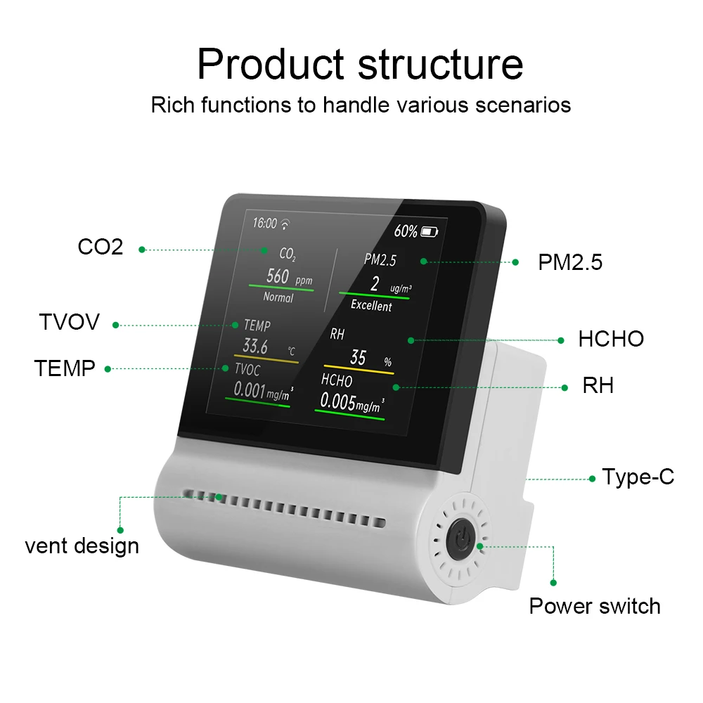 "Noyafa JMS16 5 In 1 Pm2.5 HCHO TVOC Co2 Temperature And Humidity Multifunctional Air Detector Led Display Smart Home Tester" * Buy Now With Free Shipping Just For $54