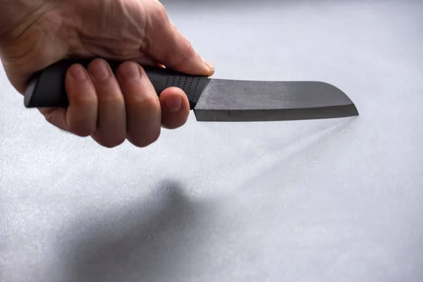 Нож и рука . Женщина держит нож в руке . Кухонные ножи над коричневым деревянным столом . Мужчина с ножом в руках . Военный с ножом в руке закрывается на черном фоне . Частичный вид человека с . . .