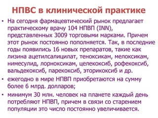 Нестероидные противовоспалительные препараты (НПВП, НПВС) - это группа лекарственных средств, действие которых направлено на симптоматическое лечение (обезболивание, снятие воспаления и понижения температуры) при острых и хронических заболеваниях .