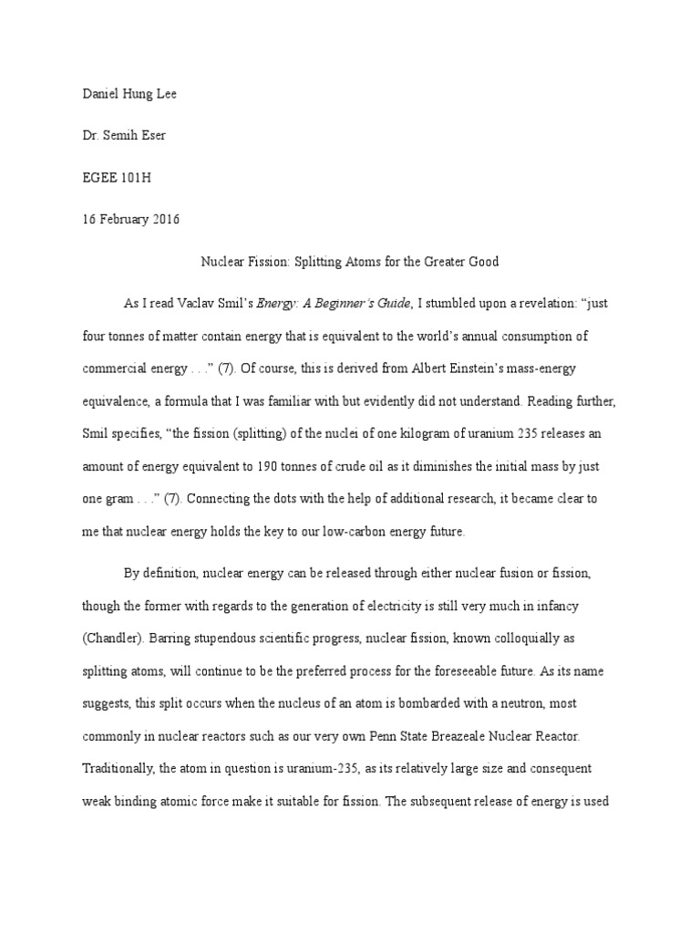 Essay on Nuclear Energy - 1490 Words | Bartleby