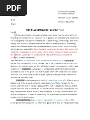 Essay paper writing . Academic writing . 1528 . 24th Jul 2020 . The topic of nuclear energy is still considered one of the hottest in modern society . Many people argue whether nuclear energy has to be used and what are its alternatives . That is why nuclear energy essays and research papers are quite popular tasks at schools and universities .