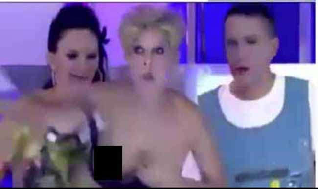 Nuda in diretta tv, conduttrice con il seno al vento in studio