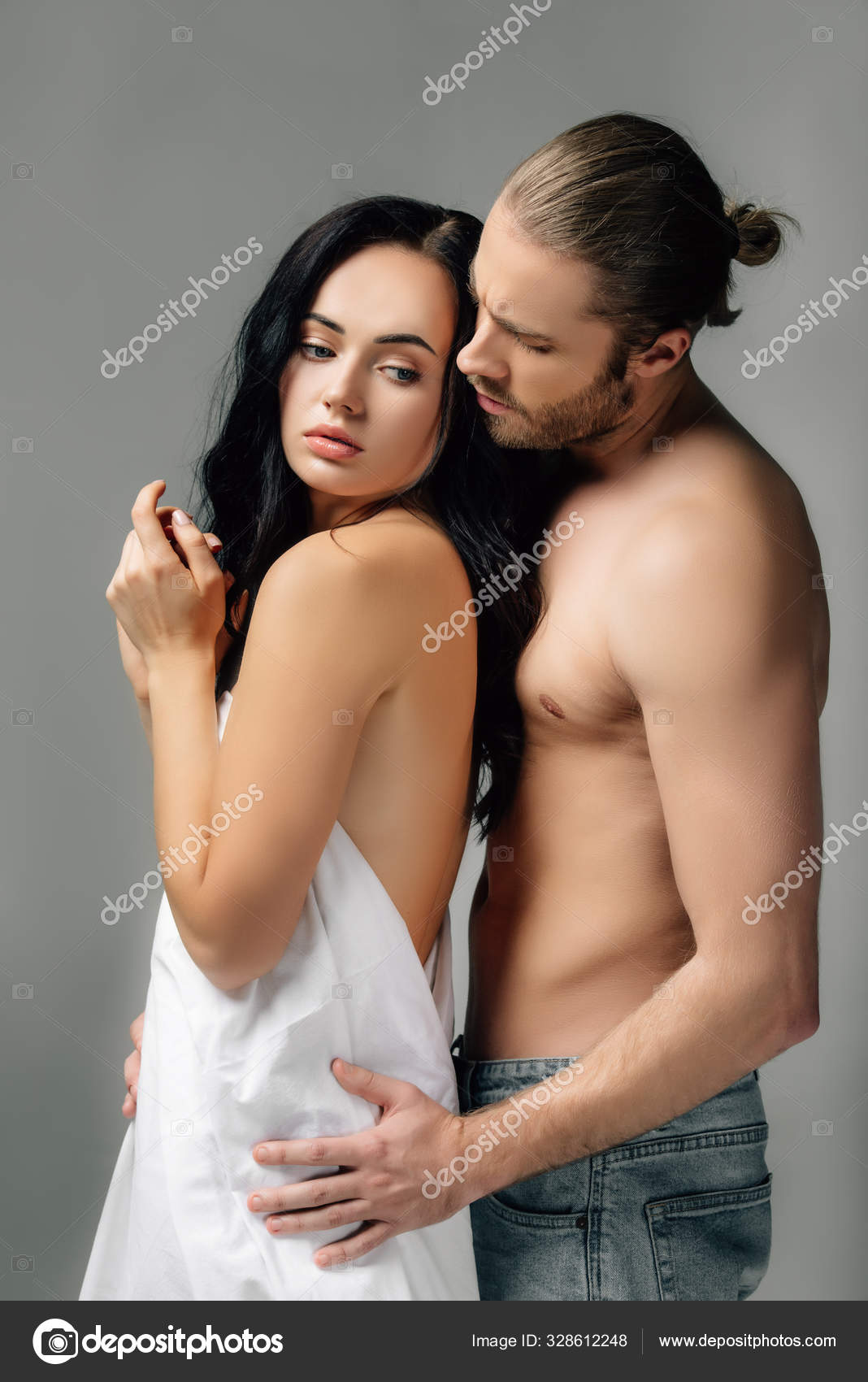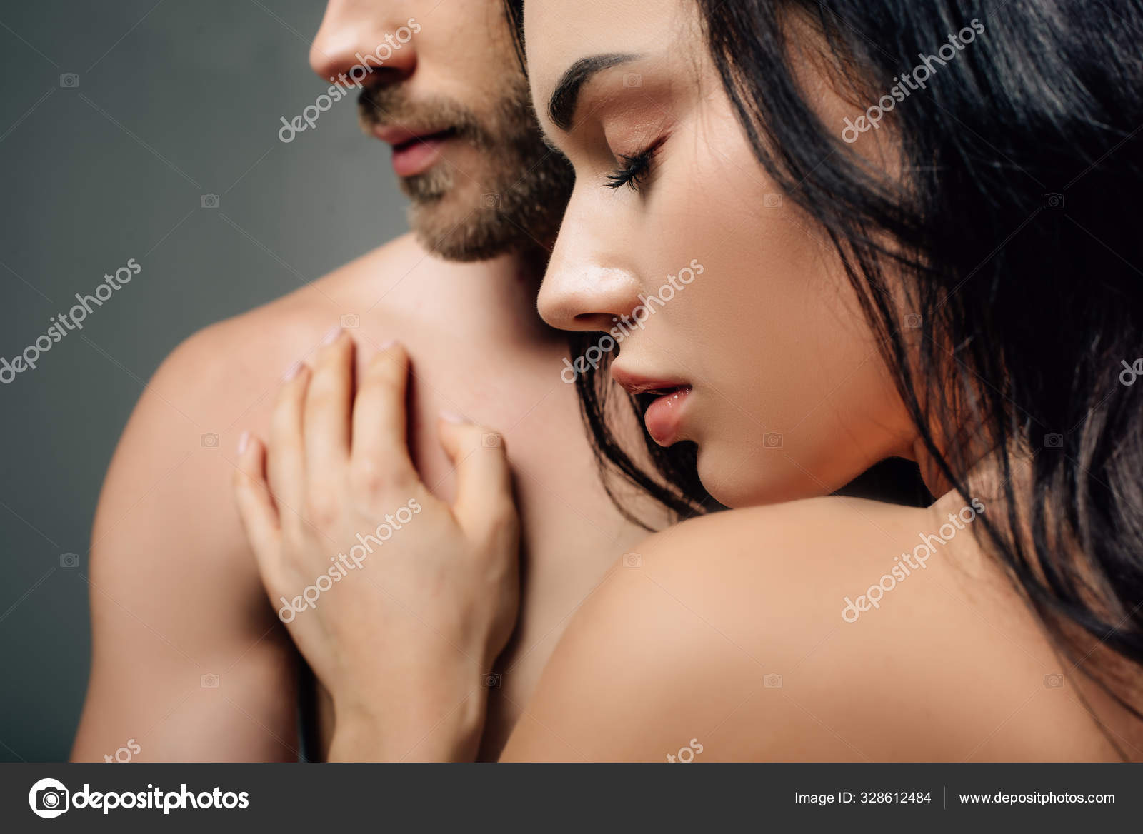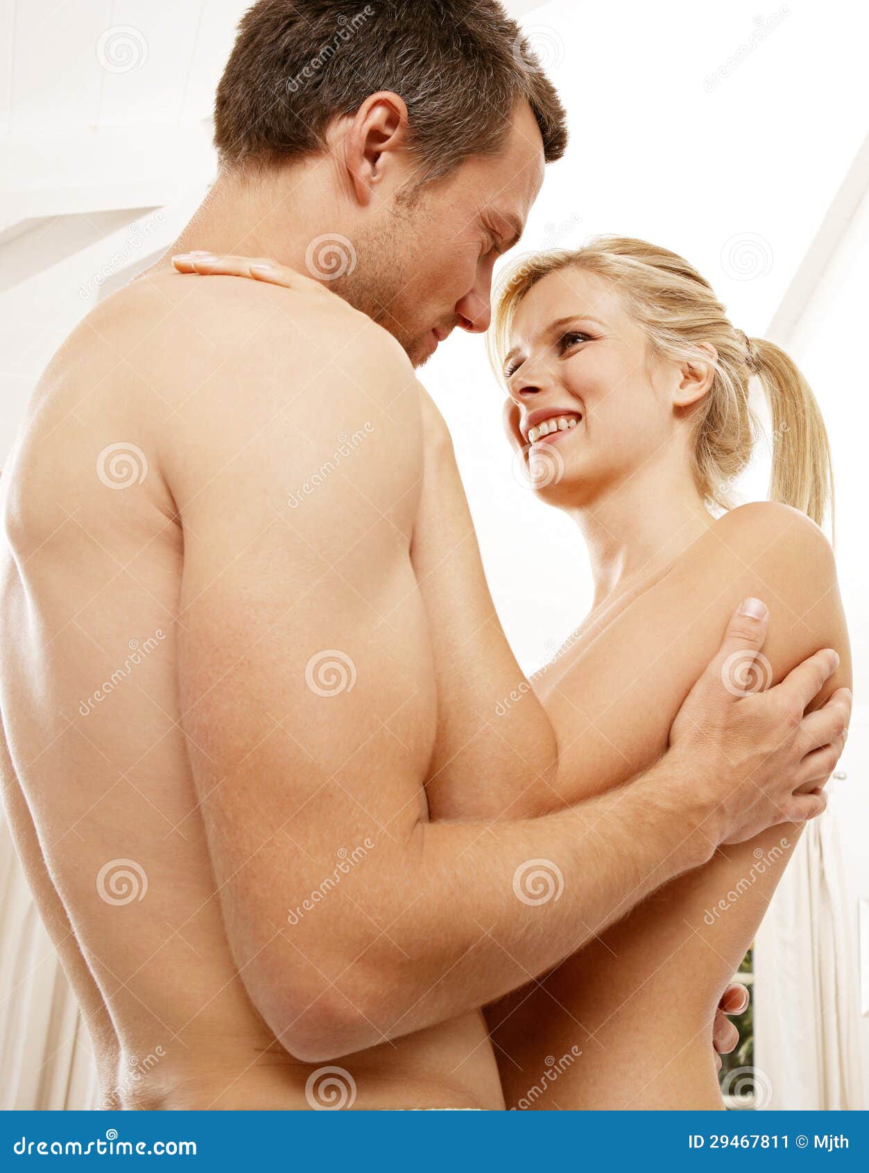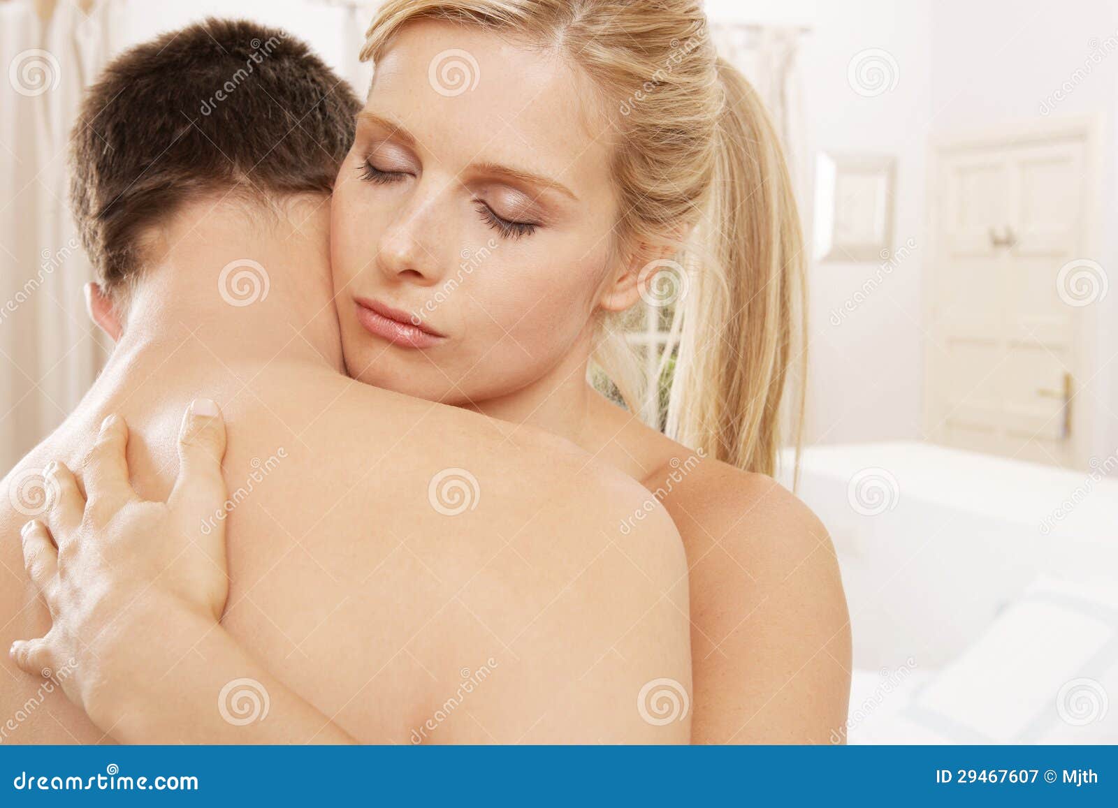 Nude couple hugging