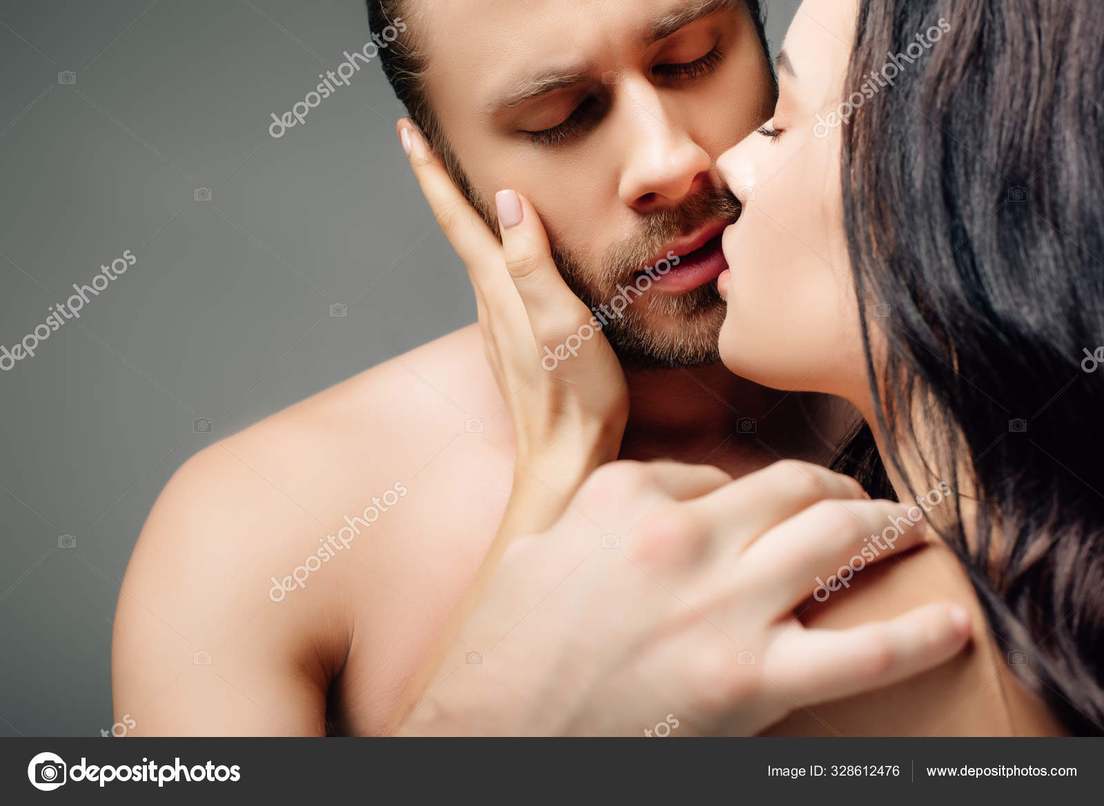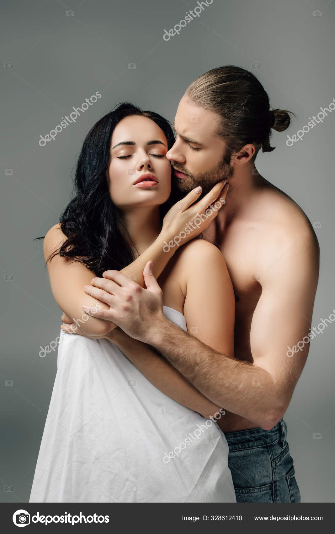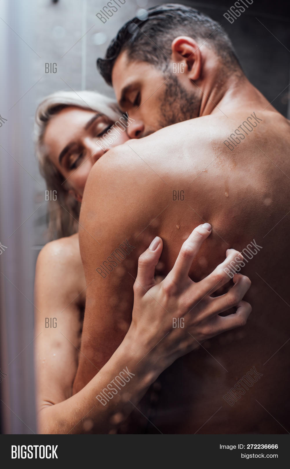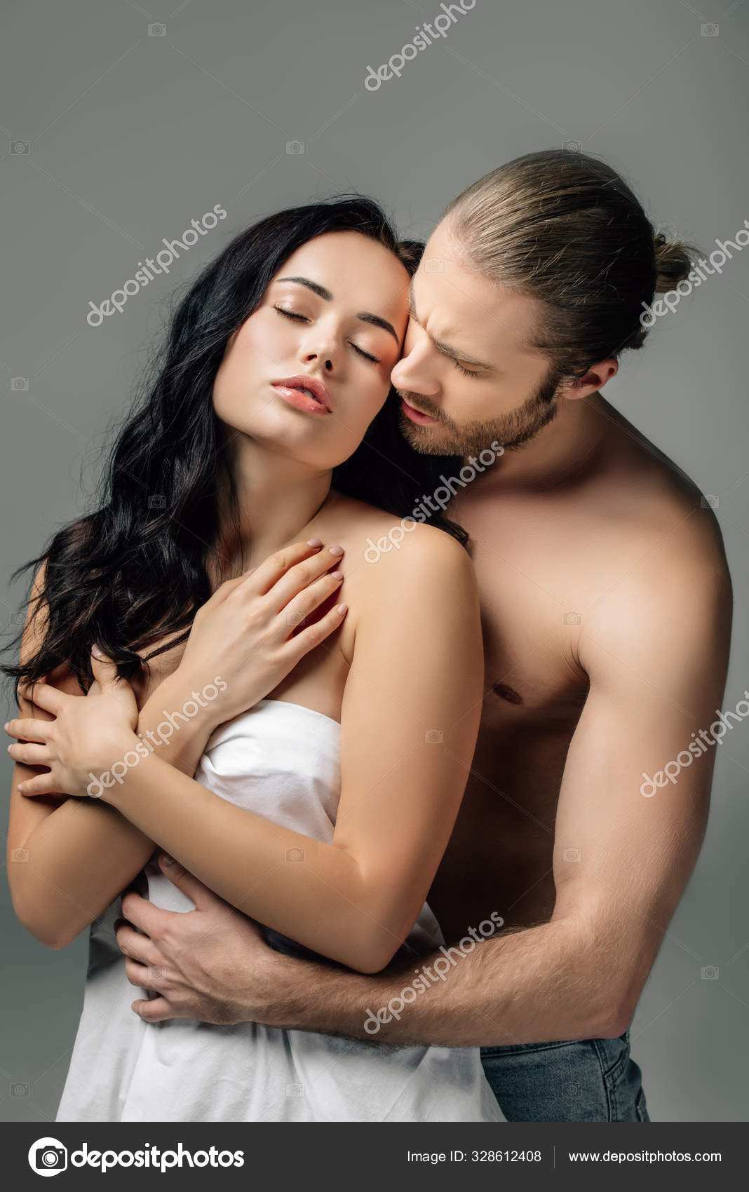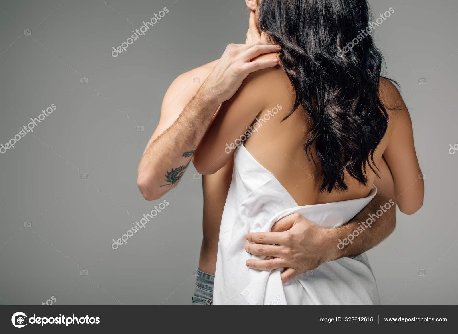 Nude couple hugging