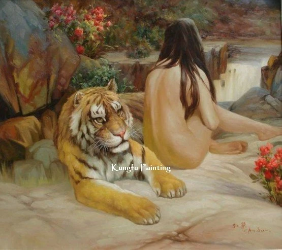 Nude girls with tigers