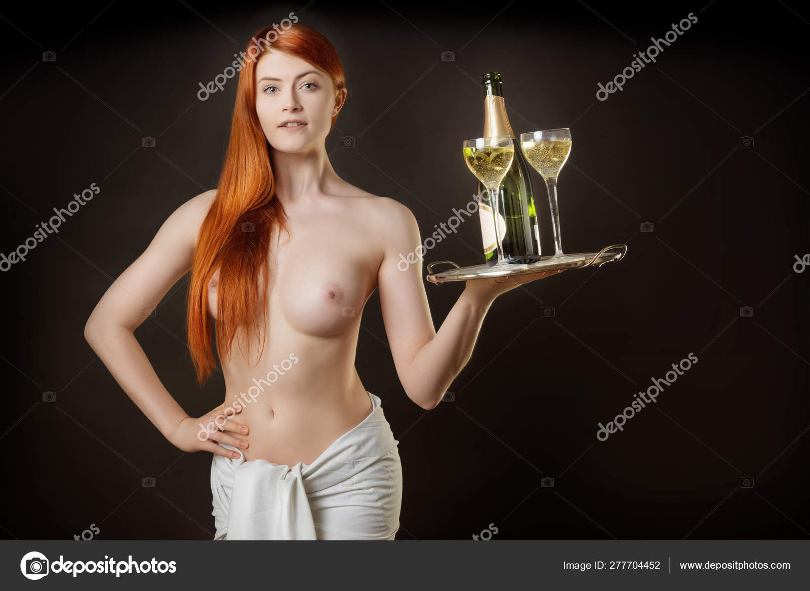 Nude sexy waitress