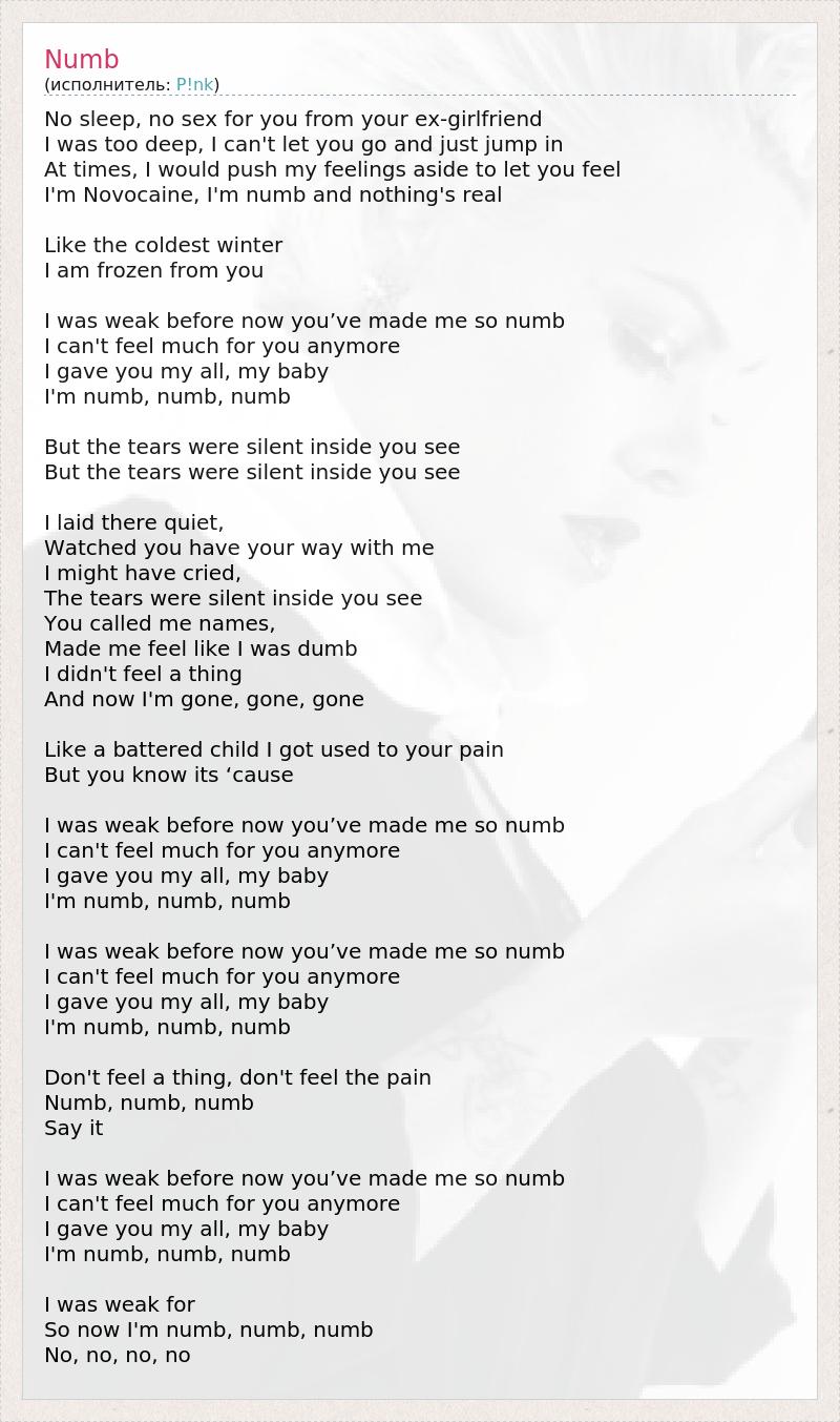 Numb перевод слова 136 фото