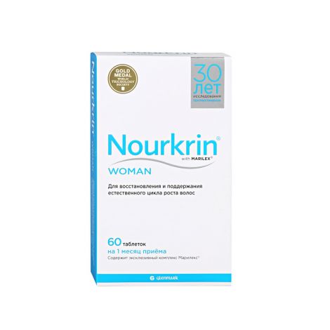Инструкция по применению Нуркрин для женщин таблетки 60шт Краткое описание Nourkrin - - всемирно известный продукт для женщин и мужчин, который помогает предотвратить и остановить выпадение волос, способствуя их здоровому росту .