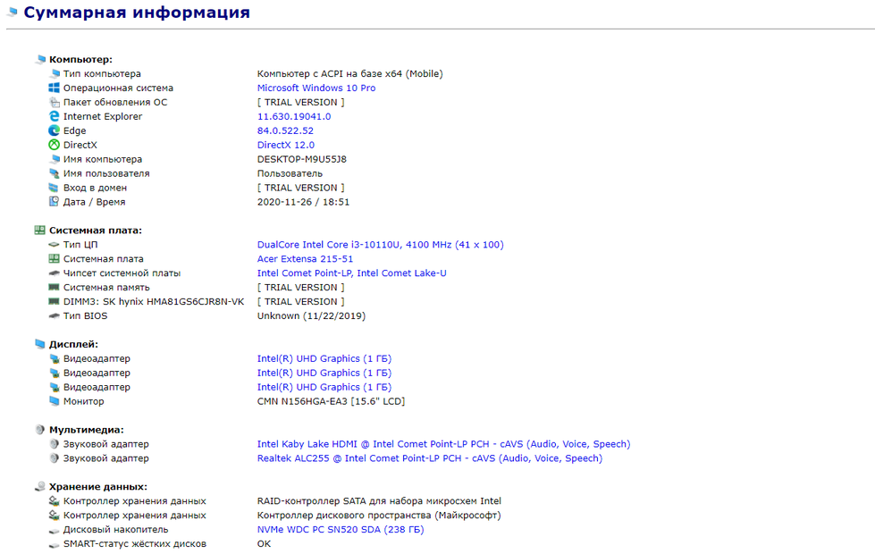 NVMe WDC PC SN520 SDA (SSD) Serial Number 20034A802466 Firmware Version Number 20110000 Interface RAID Capacity 476 GB Real size 512,110,190,592 bytes RAID Type Software RAID Seagate BUP Slim SCSI Disk Device (SSD) Heads 16 Cylinders 121,601 Tracks 31,008,255 Sectors 1,953,520,065 SATA type SATA-III 6 .0Gb/s Device type Fixed ATA Standard ACS3