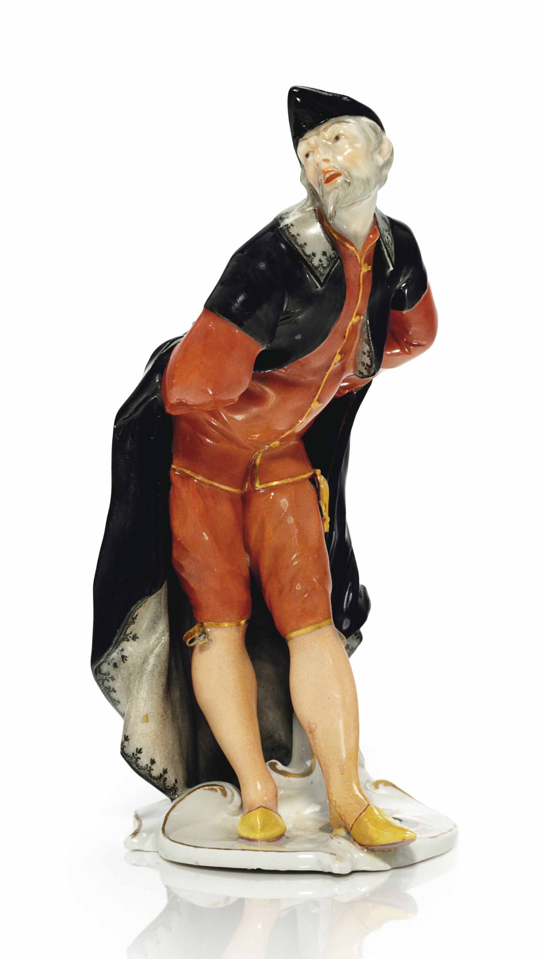 Manufactory: Nymphenburg Porcelain Manufactory (German, 1747-present) Modeler: Franz Anton Bustelli (Swiss, Locarno ca . 1720-1763 Munich) Date: ca . 1760 . Culture: German, Neudeck- Nymphenburg . Medium: Hard-paste porcelain decorated in polychrome enamels and gold . Dimensions: Overall (confirmed): 8 1/8 × 4 1/4 × 3 1/2 in . (20 .6 × 10 .8 × 8 . . .