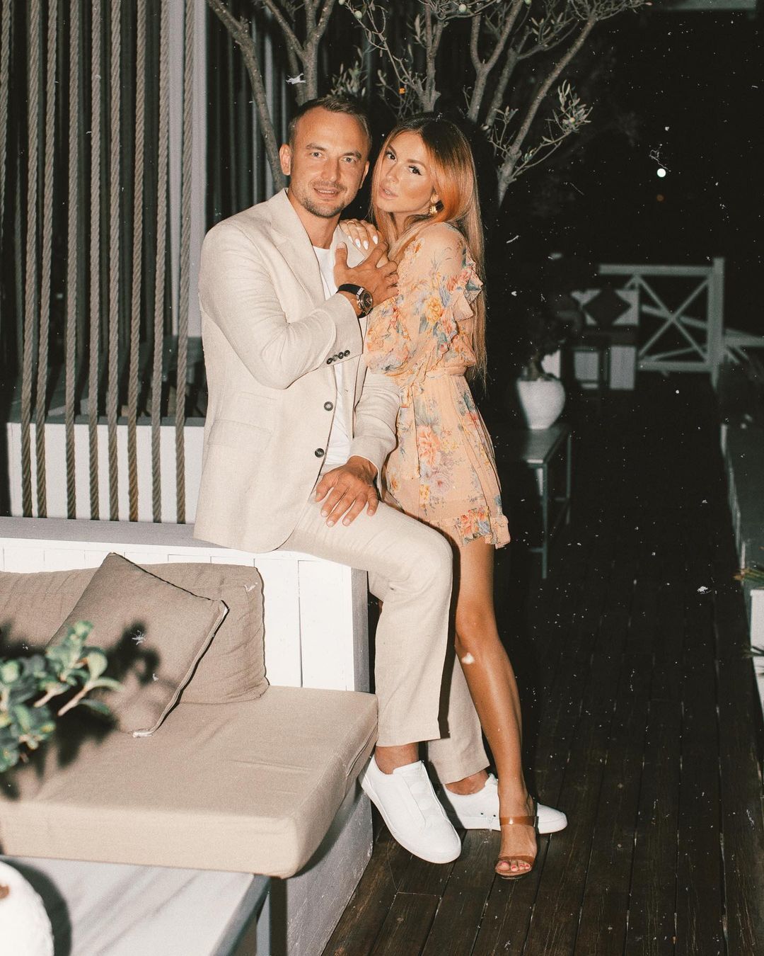 На фото: певица Нюша и Влад Соколовский . Пара даже вместе отдыхала на Мальдивских островах, ее часто видели на разных массовых мероприятиях . Позднее, по неизвестным причинам, пара рассталась .