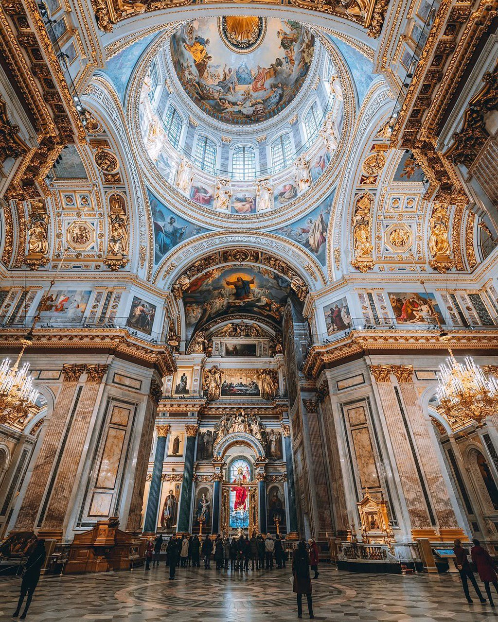 Вот, допустим, фото Исаакиевского собора изнутри. Ты заходишь и чувствуешь себя действительно уже не на земле. Смотришь вверх на роспись и видишь такое величие Божие, такое величие святых, что не передать. Тех, кого весь мир считал за убогих, за отбросов общества, за недочеловеков изображены в такой славе, что мурашки по коже. Наглядно видишь, как Господь всех верных своих прославит.