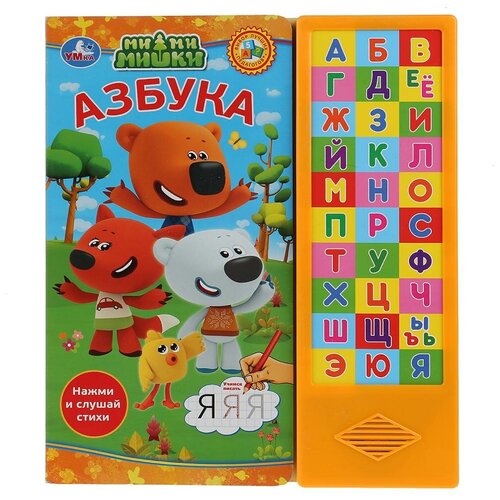 En jouant avec le livre, l'enfant pourra, de manière ludique, avec les personnages du dessin animé "Mimimishki", non seulement se familiariser avec les lettres et les syllabes, écouter leur prononciation correcte, mais aussi s'entraîner à orthographier les lettres. dans les cahiers. Le bébé sera heureux de regarder des images avec des illustrations de ses personnages de dessins animés préférés, de lire et d'écouter des poèmes. Appuyez sur le bouton et vous entendrez la lettre et le verset, appuyez à nouveau pour couper le son. Les gros boutons sont pratiques pour les enfants – faciles à allumer et à éteindre. Un tel livre attirera immédiatement l’attention de l’enfant avec ses poèmes, ses illustrations lumineuses et ses cahiers. Les compositions sont interprétées par des artistes professionnels. Grâce à son format compact, il est pratique à emporter avec soi. - Élargit le vocabulaire et les horizons - Développe la motricité fine - apprend à écrire - Favorise le développement de la mémoire