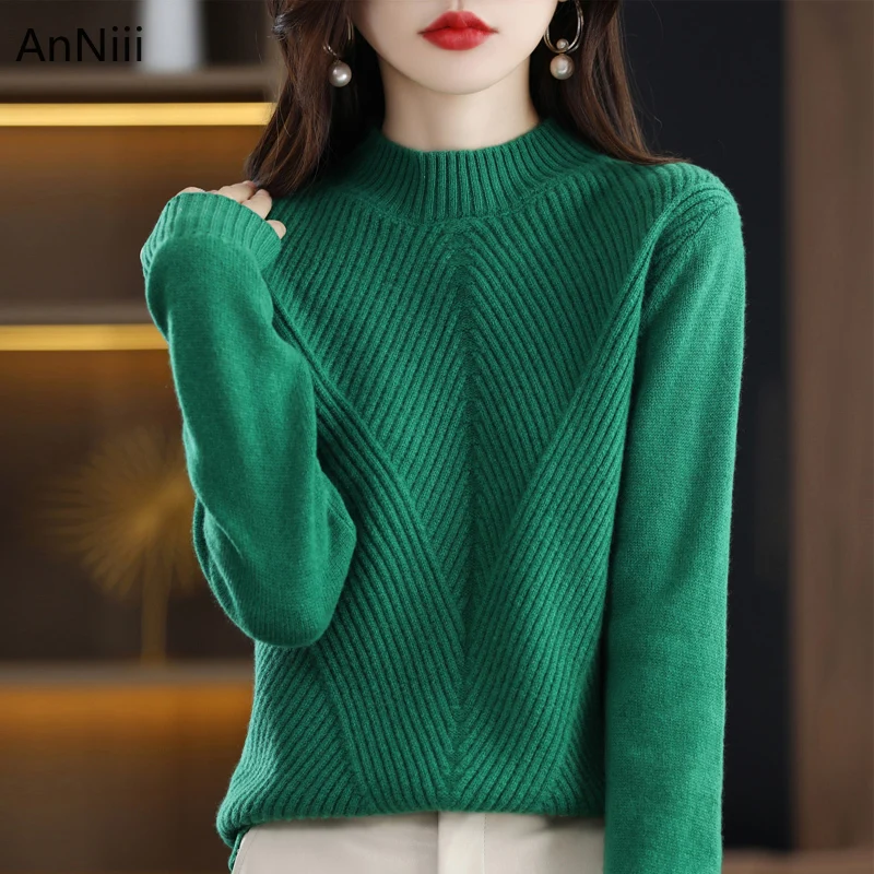 Women Cashmere 2021 New Autumn Winter Vintage Half Turtleneck Sweaters Loose Wool Knitted Pullovers Female Knitwear po luchshej 10 09