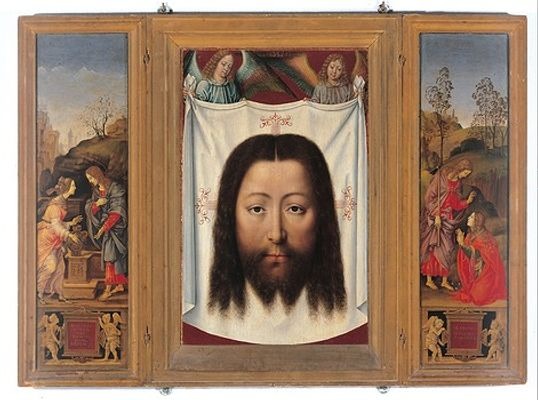 Среди произведений моё внимание привлекла деревянная скульптура, изображающая, как мне показалось, Царя Давида. Ну, кого еще можно представить себе в короне, с большой волнистой бородой, изогнутым носом и печальными карими миндалевидными глазами, да ещё в музее Патриаршей Семинарии? Однако на экспликате стояло: "", XIV AD. Более того, с той же стены, рядом с которой расположили бюст дальнего родственника Царя Давида, на меня укоризненно смотрел темноглазый и бородатый мужчина дальневосточной наружности, чей образ, Ханс Мемлинг изобразил на убрусе. Даже начинающему искусствоведу известно, что с убруса на него может смотреть только один единственный персонаж.