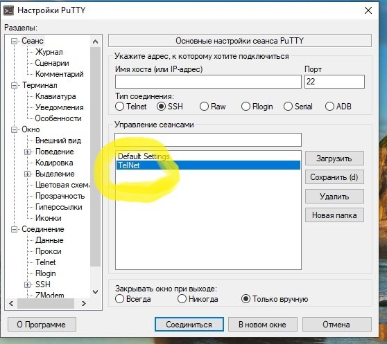 Далее два раза нажимаем на пункт TELNET.