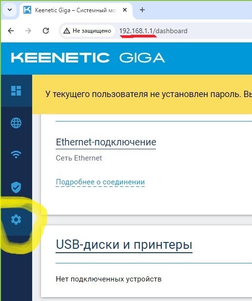 В браузере набираем WEB адрес админки роутера 192.168.1.1
