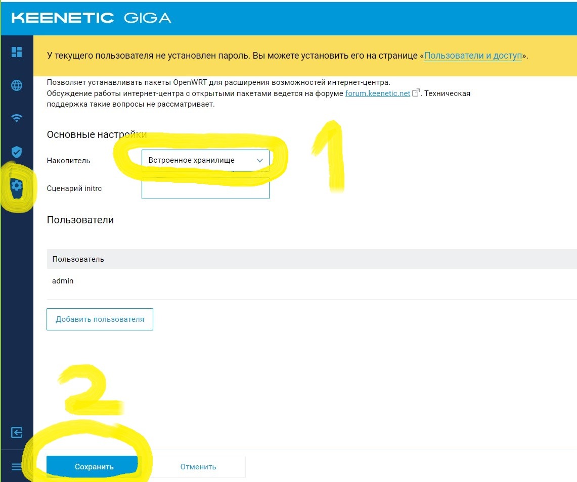 В разделе OPKG в накопителе выбрать Встроенное хранилище и нажать СОХРАНИТЬ.