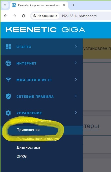 Выбираем пункт ПРИЛОЖЕНИЯ.