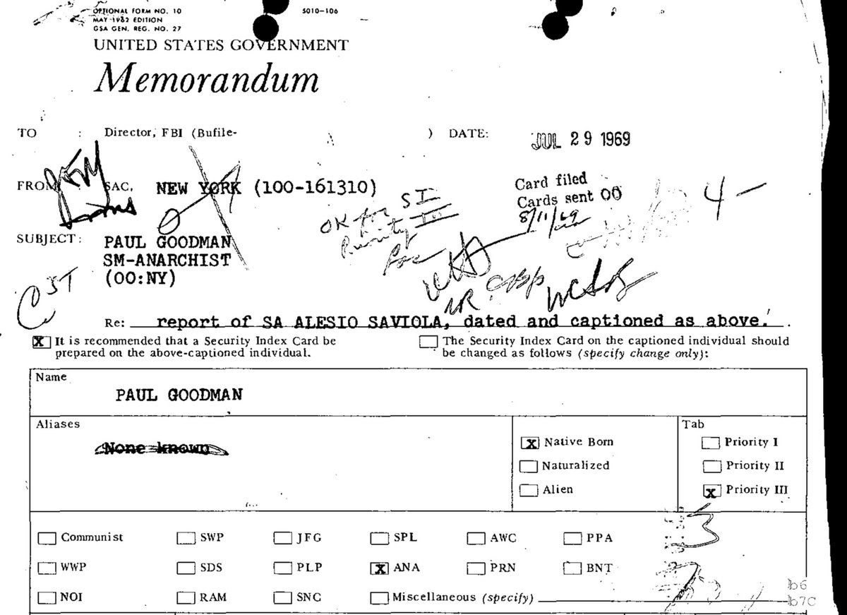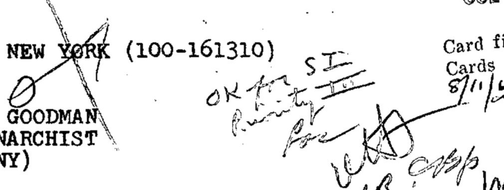 А это грязный документ из ФБР из тех же времён - кейс-файл на анархиста. Я получила его, воспользовавшись Законом о свободе информации (FOIA).
