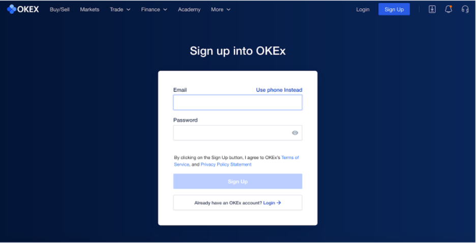 Important Note: Please check whether your country is supported by OKEx before you sign up.