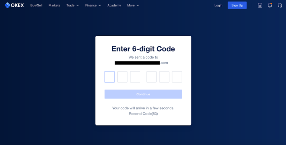 After entering the details, click on Sign Up and you will be prompted to verify your email address or phone number using a code sent by OKEx. This code is valid for 30 minutes and will expire after that, requiring you to repeat the process.