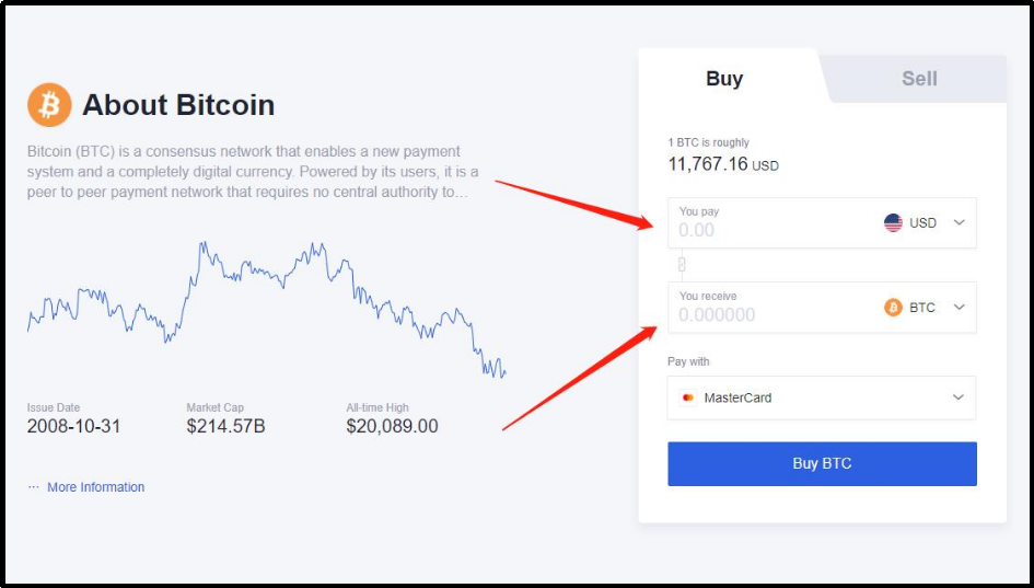 Let’s say if you want to buy Bitcoin with $USD, input the amount of $USD that you want to pay for Bitcoin, and choose the payment method.