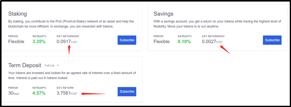 Another update is that staking service will now settle yields in the corresponding staked assets, for example, all EOS staking orders will be settled in EOS, and IOST skating orders in IOST, giving much more convenience for managing your profits.