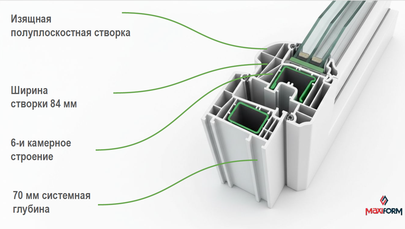 - 6 камер в профиле створки