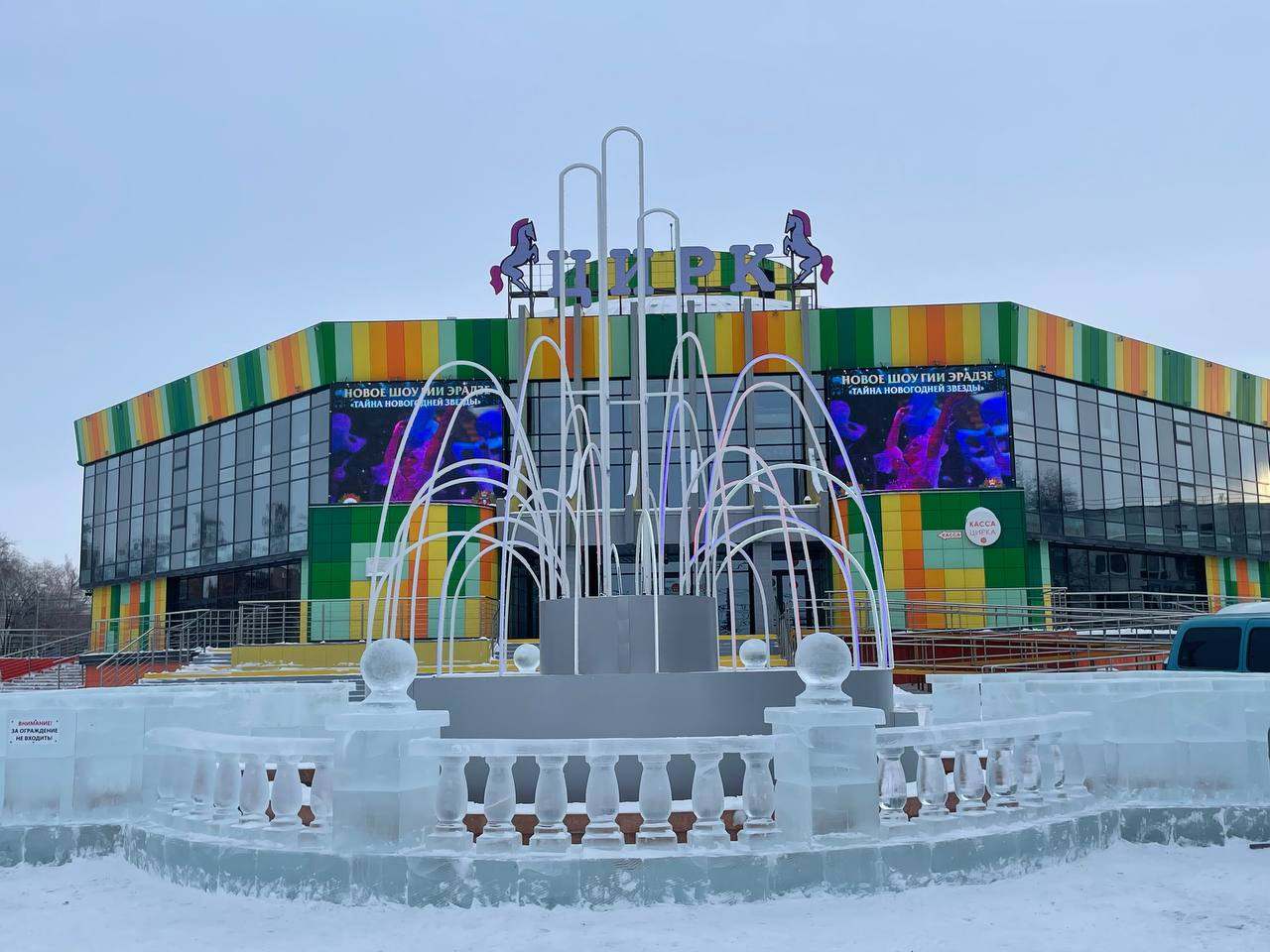 А на новогодние праздники превратили цирк в центр новогодья с двумя шестиметровыми ёлками и тремя новогодними локациями: «гостиная Снеговиков», «волшебный лес» и «Новый год со вкусом детства».