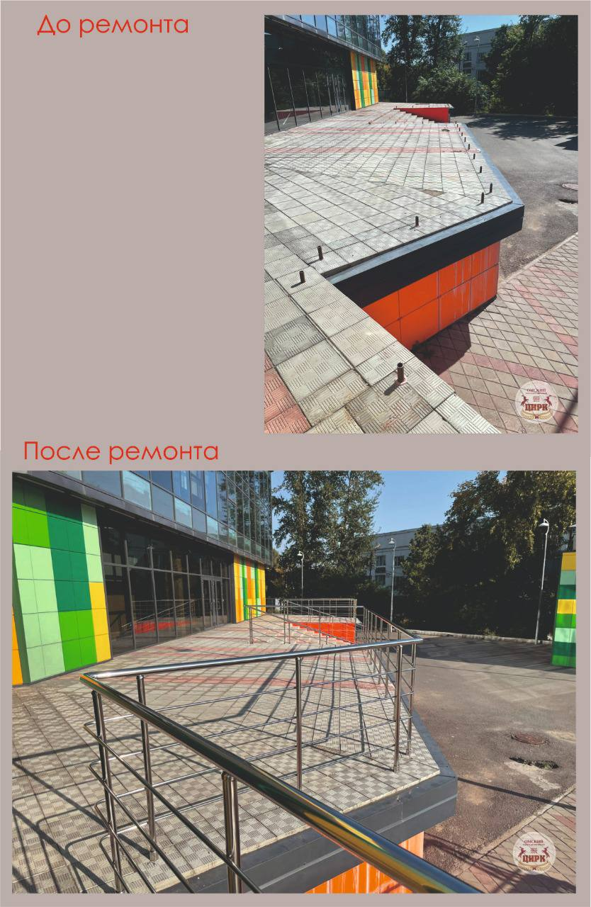 Благодаря поддержке руководства ФКП «Росгосцирк» в этом году отремонтированы разрушенные парадные лестницы; пандус для инвалидов; установлено ограждение террасы.