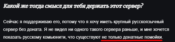 В своем интервью комендант рассказал своему другу Александру Погодину о том, что он создает не донатную помойку. При этом он продает киты на своем же сервере, выданные из ГМ 1.