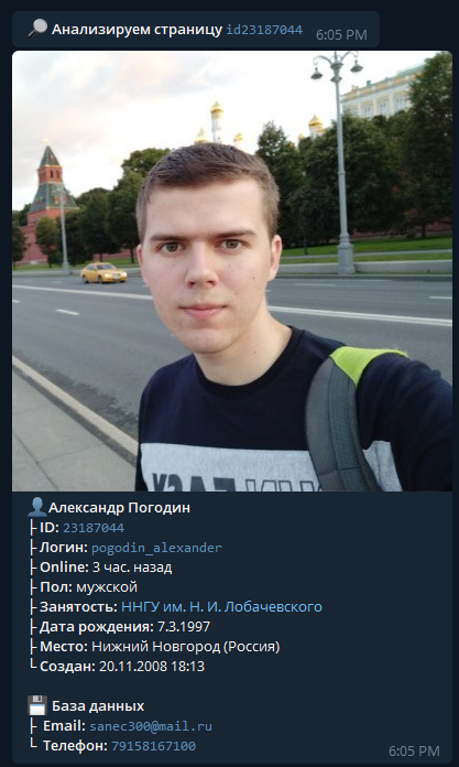 Информации достаточно много на его странице, поэтому всё мы записываем к себе в файл и оставим в самом конце расследования. Далее мы пробиваем информацию о страничке в ВК, снова переходим в Глаз Бога.