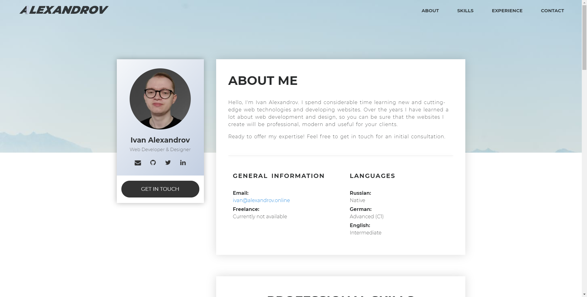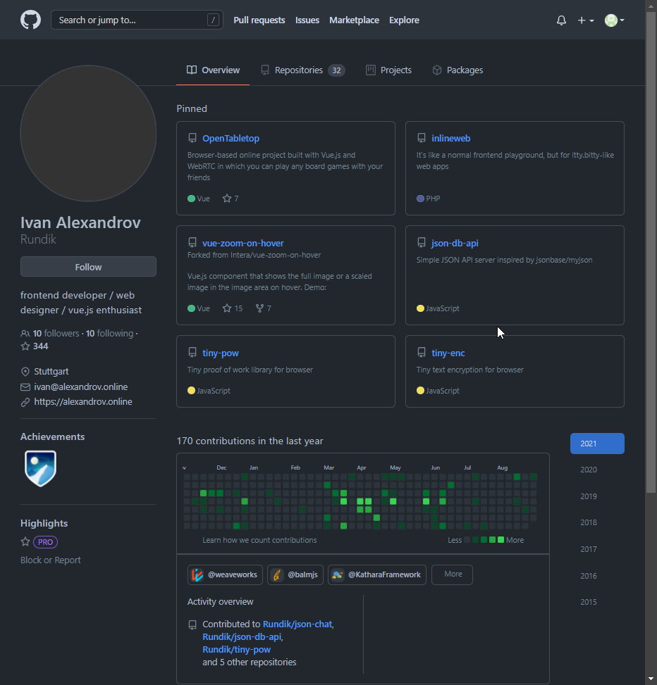 На его странице GitHub мы видим его сайт-портфолио. На котором мы узнаем, что он хороший программист на JS и его фреймворках, PHP, а также верстает сайты на HTML5 + CSS3. И такой человек может играть в майнкрафт просто так? Удивляет...