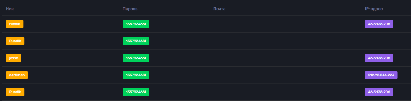Видим совпадения по паролям и IP на аккаунтах Rundik, rundik, jesse.