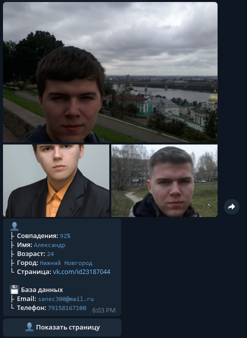 Снова возвращаемся к Глазу Бога, вбиваем данную фотографию туда и получаем 92% результат совпадения!