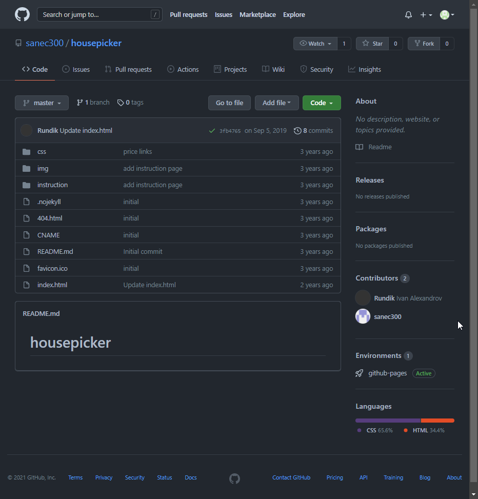 Далее мы заходим в данный репозиторий и находим там двух контрибьютеров: sanec300 и Rundik.