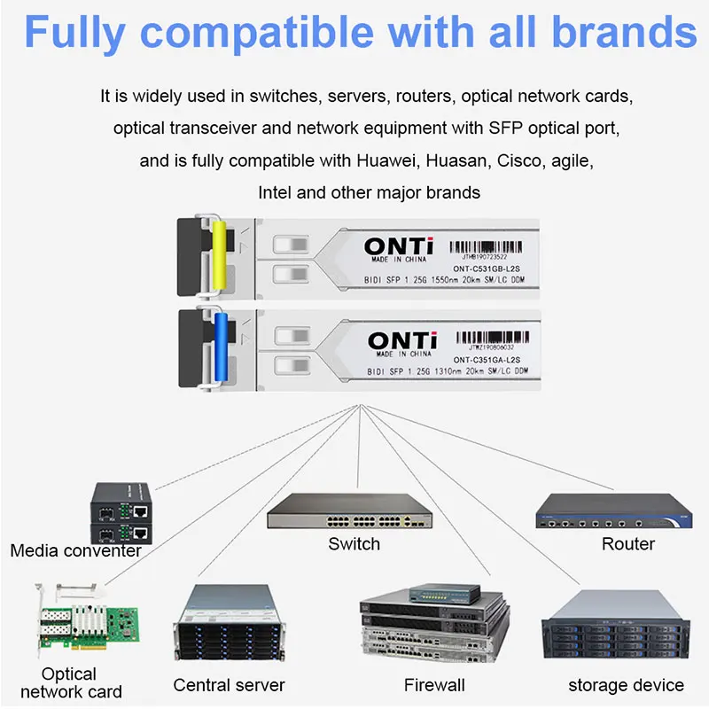 QBLYdEhNiaLooked for ONTi Gigabit SFP Module SM LC WDM 1.25G Bidi Single Mode Fiber Optical Transceiver Compatible with Cisco Switch for a long time, but could not find it? Bring to your attention ONTi Gigabit SFP Module SM LC WDM 1.25G Bidi Single Mode Fiber Optical Transceiver Compatible with Cisco Switch with the best price!