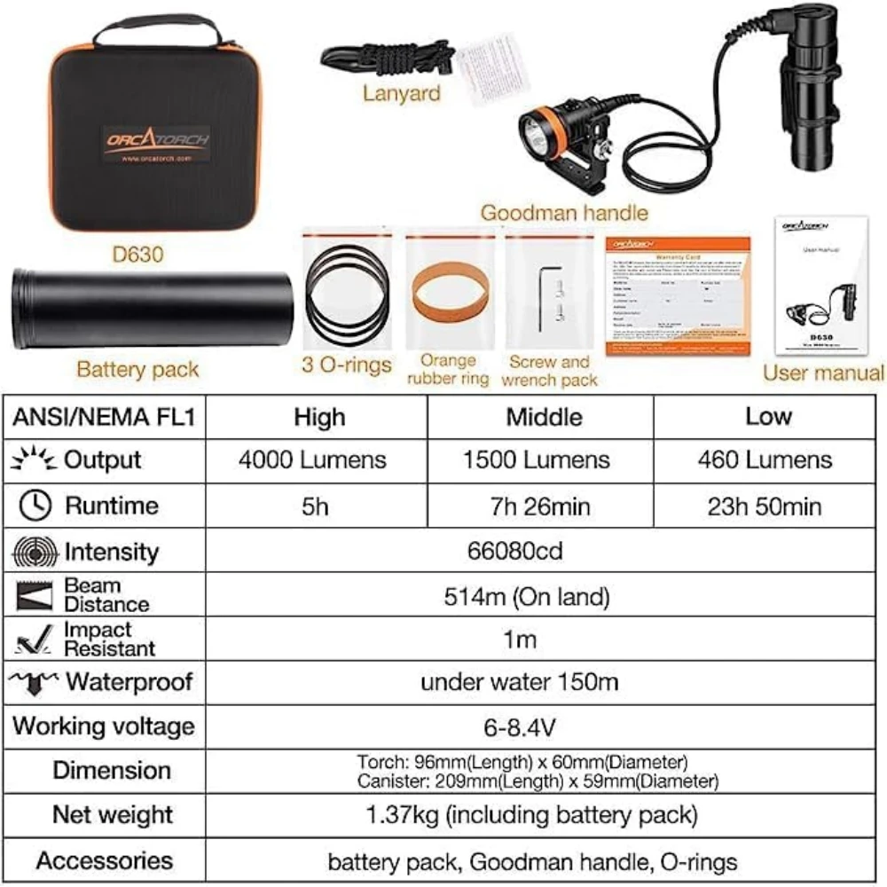 NzbuGoRQxVHere you can buy ORCATORCH D630 Scuba Diving Flashlight Professional Scuba Dive Accessories Waterproof Flashlight Rechargeable Led Diving Torch with free delivery to your post office.