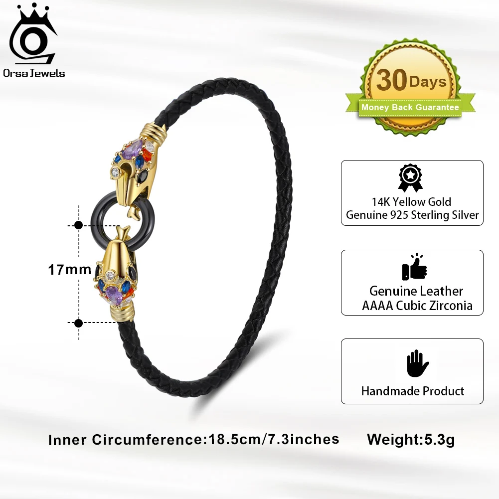 «ORSA JEWELS Vintage Gothic 925 Silver Snake Design Chain Bracelet with Multi-Color CZ for Women Punk Bracelet Jewelry EQB15» по лучшей цене на рынке! Всего за 25$ (2375рублей)